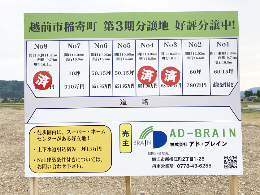 【6月30日】鯖江市北野町2丁目③【売土地】