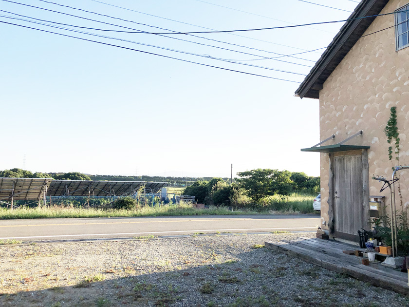 見渡す限り田園風景と海が広がる自然たっぷりの田舎に建つ中古店舗です。