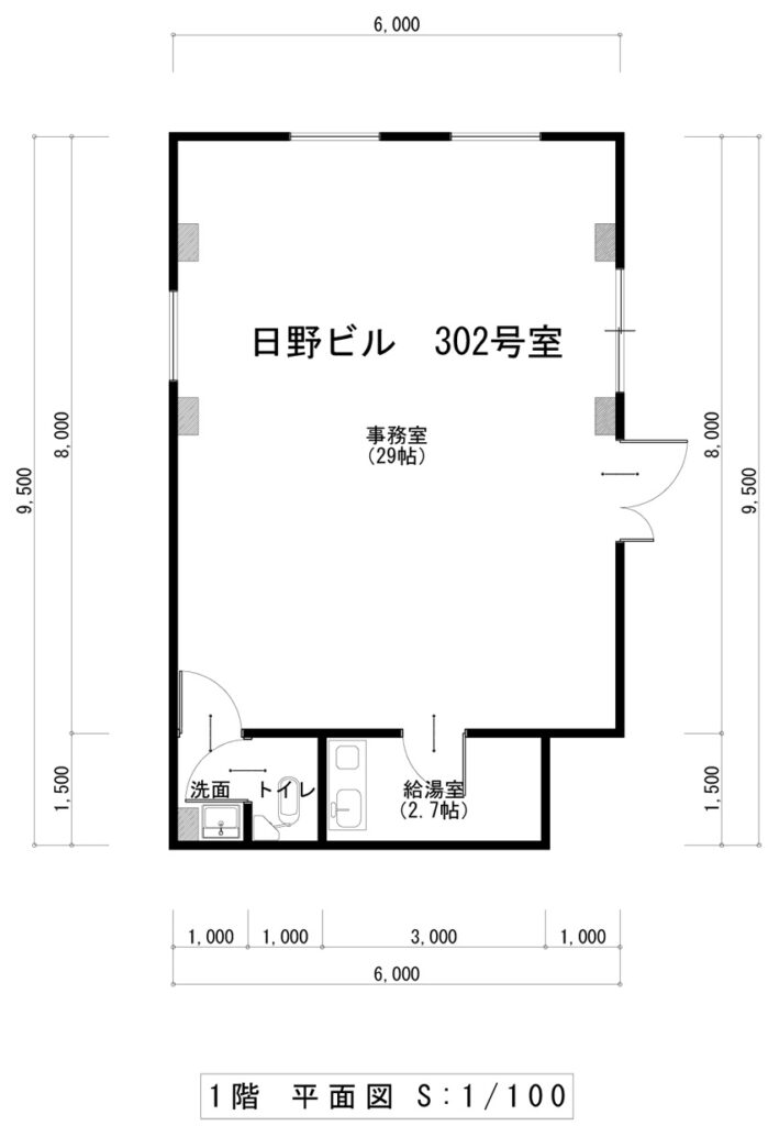 そして利便性の良い立地に29帖の事務室、その他はトイレ、洗面、給湯室が揃って月々27500円のお手頃価格です。3階なので部屋からの見晴らしも良いですよ!