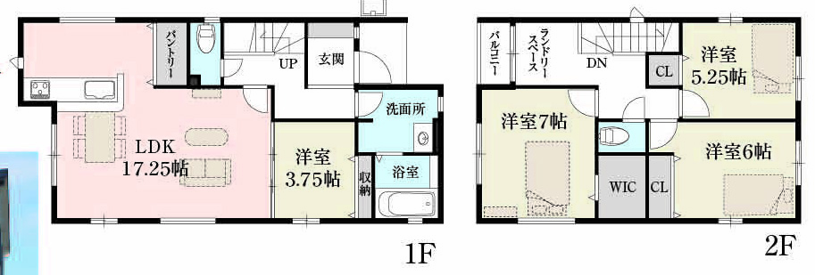 1階LDK17.25畳 1階洋室3.75畳 2階洋室7畳 2階洋室6畳 2階洋室5.25畳 |