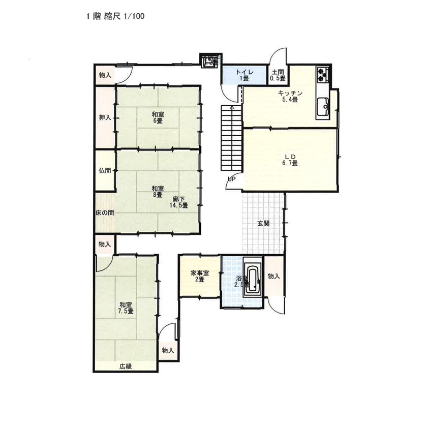1階K5.4畳 1階DK6.7畳 1階和室8畳 1階和室7.5畳 1階和室6畳 1階その他2畳 2階和室8畳 2階和室6畳 2階S4畳 |