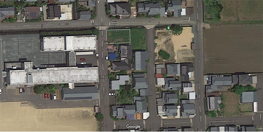 こちらがあるのは、武生第六中学校から徒歩で1分の閑静な住宅街の一画です。