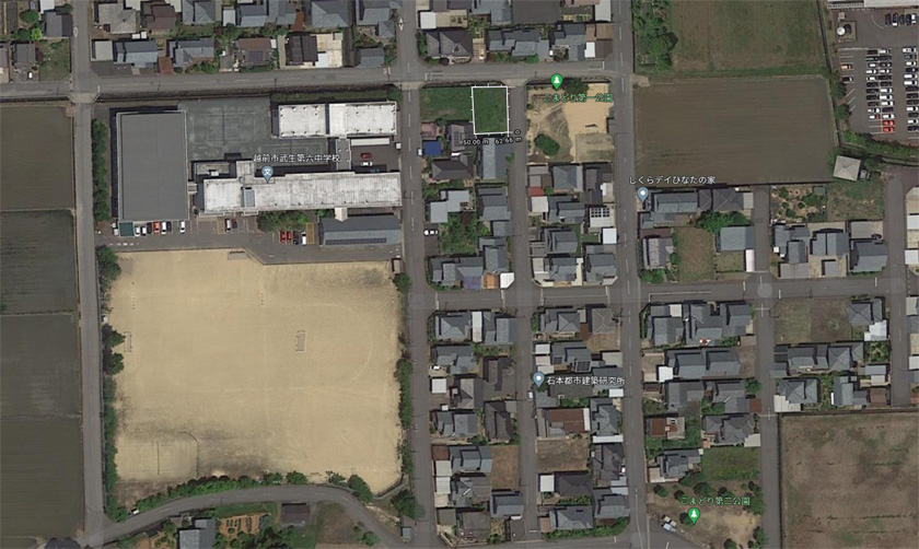 こちらがあるのは、武生第六中学校から徒歩で1分の閑静な住宅街の一画です。