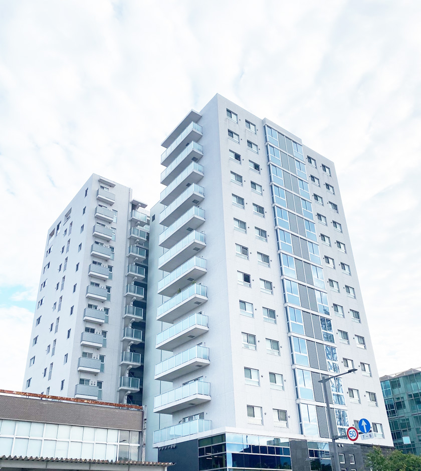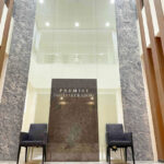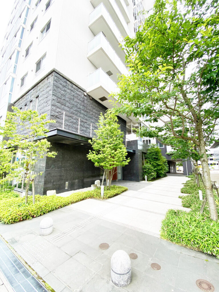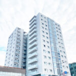 近くには県庁、国際交流会館(徒歩3分)や新福井駅(徒歩5分)、福井駅(徒歩7分)、田中病院(徒歩4分)、福井中央郵便局(徒歩7分)のある好立地で一目でプレミスト大手さくら通りだと分かる建物です。
