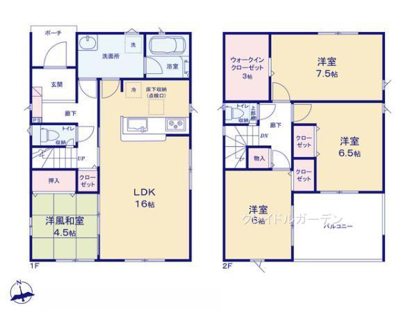 1階LDK16畳 1階和室4.5畳 2階洋室7.5畳 2階洋室6.5畳 2階洋室6畳 2階S3畳 |