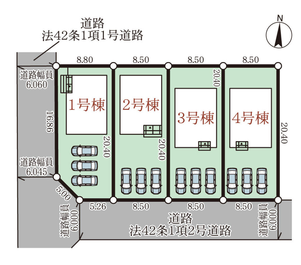 | 部屋/区画番号 | 総戸/区画数 | 全4棟 | |