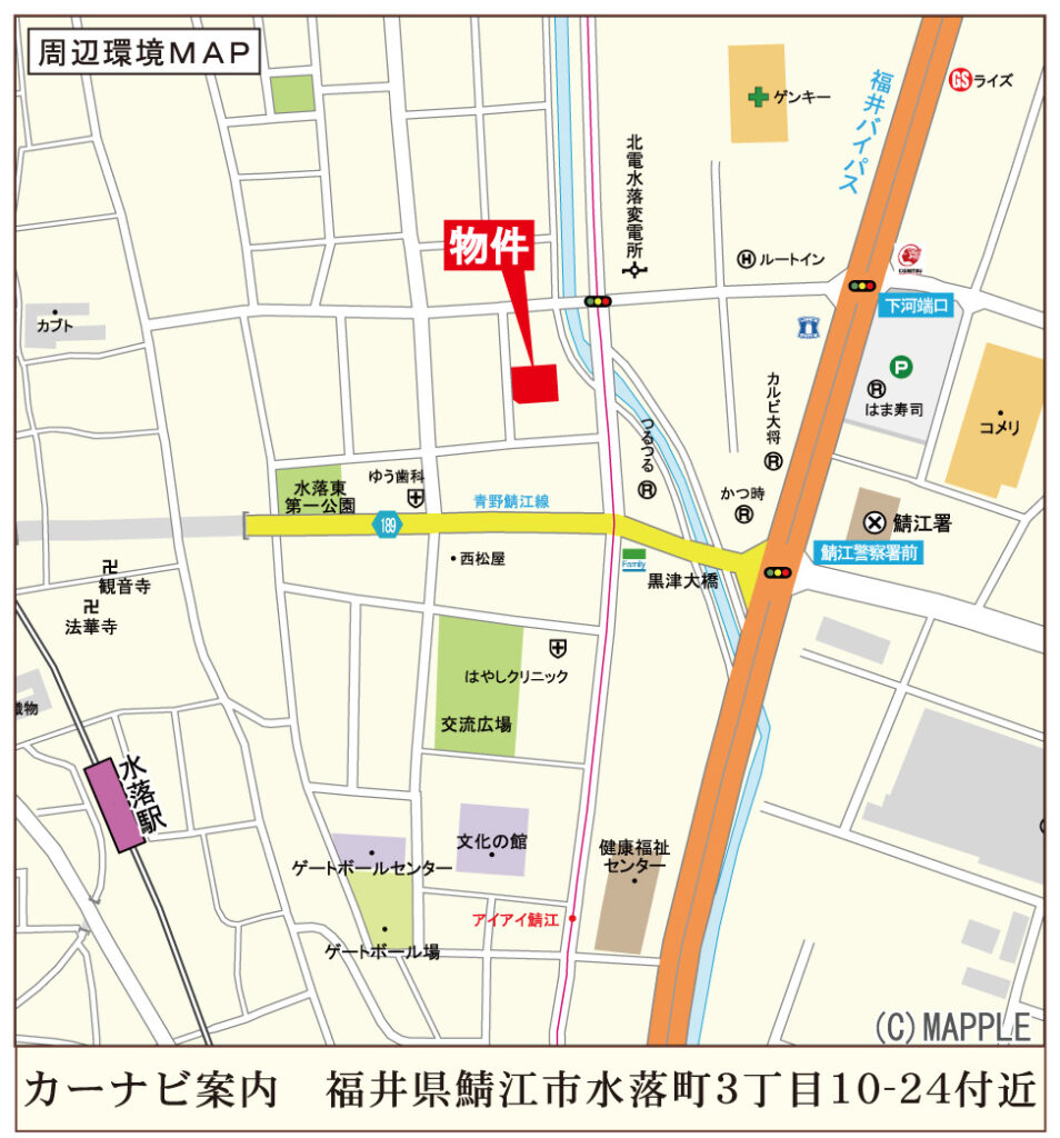 - 福井鉄道福武線水落駅 徒歩650m 徒歩9分